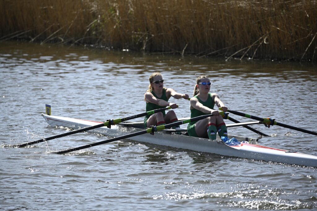 W J15 2x of Ellie & Hannah, 77.4% GMT, enjoyed all sides of the river winning by 22″ over Newark and would have won J18 too, only headed by Martha & Lulu in Junior Women’s 2x by 12″ and coming 3rd in W 2x.