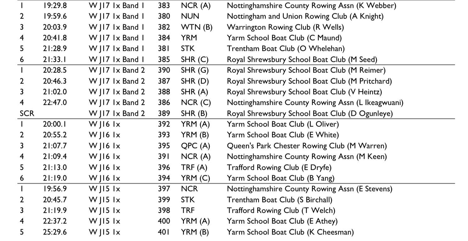 The J16 2x’s time was only 20” behind the J18 winners and placed them second fastest junior women’s double, in addition, Hannah & Ellie gained 3rd place in the J16 2x.