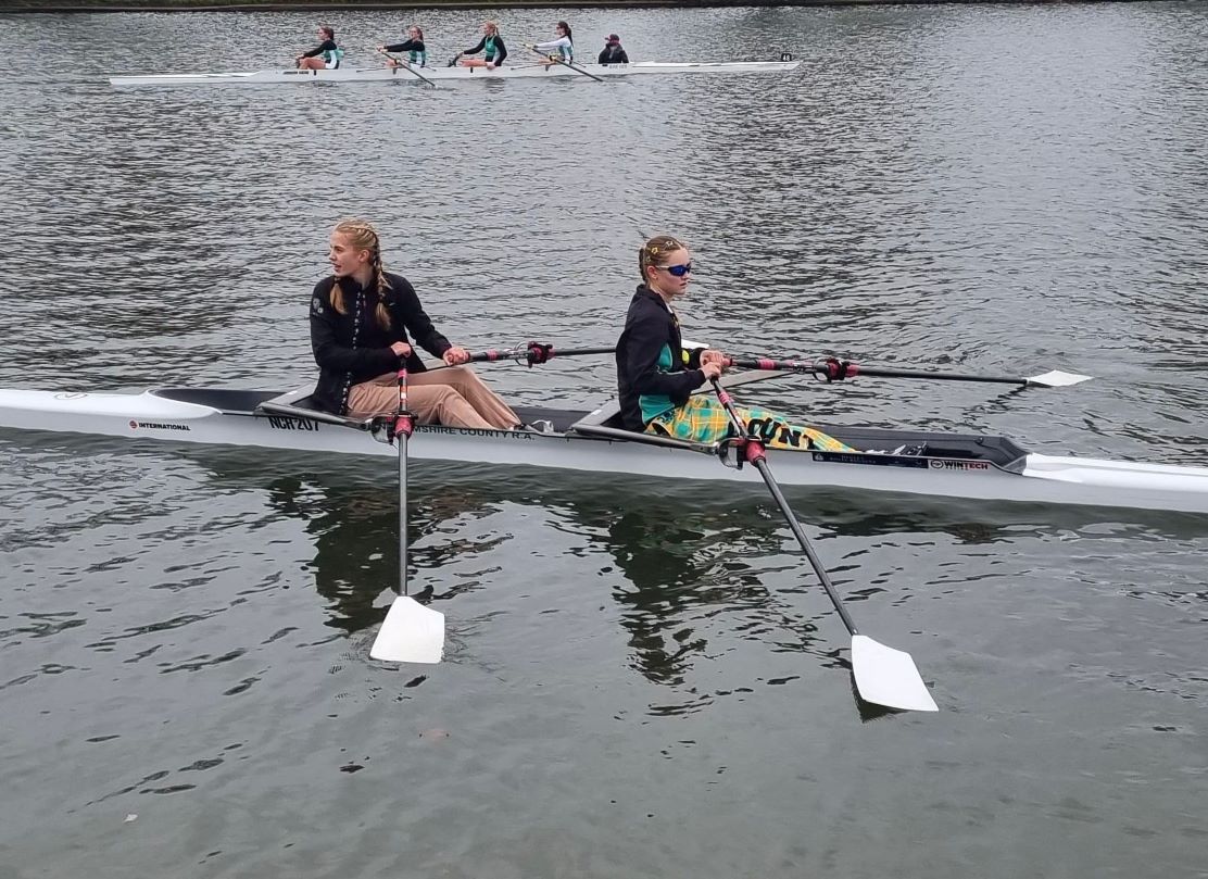 WJ16 2x – Martha and Elise raced in div1 setting off first in the event. They ended up 1st in division 1 but after the div2 boats raced, they ended up in 5th place out of 38 with a time of 10:53 and a GMT of 90.43%. They were 14 seconds behind 1st place who raced in div2.